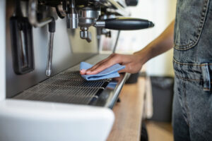 Realize uma limpeza profunda no cantinho do café antes das férias coletivas. Isso inclui a limpeza de máquinas de café, geladeiras, mesas e áreas de armazenamento. Incentive os colaboradores a limparem seus próprios utensílios e a descartarem itens perecíveis da geladeira.